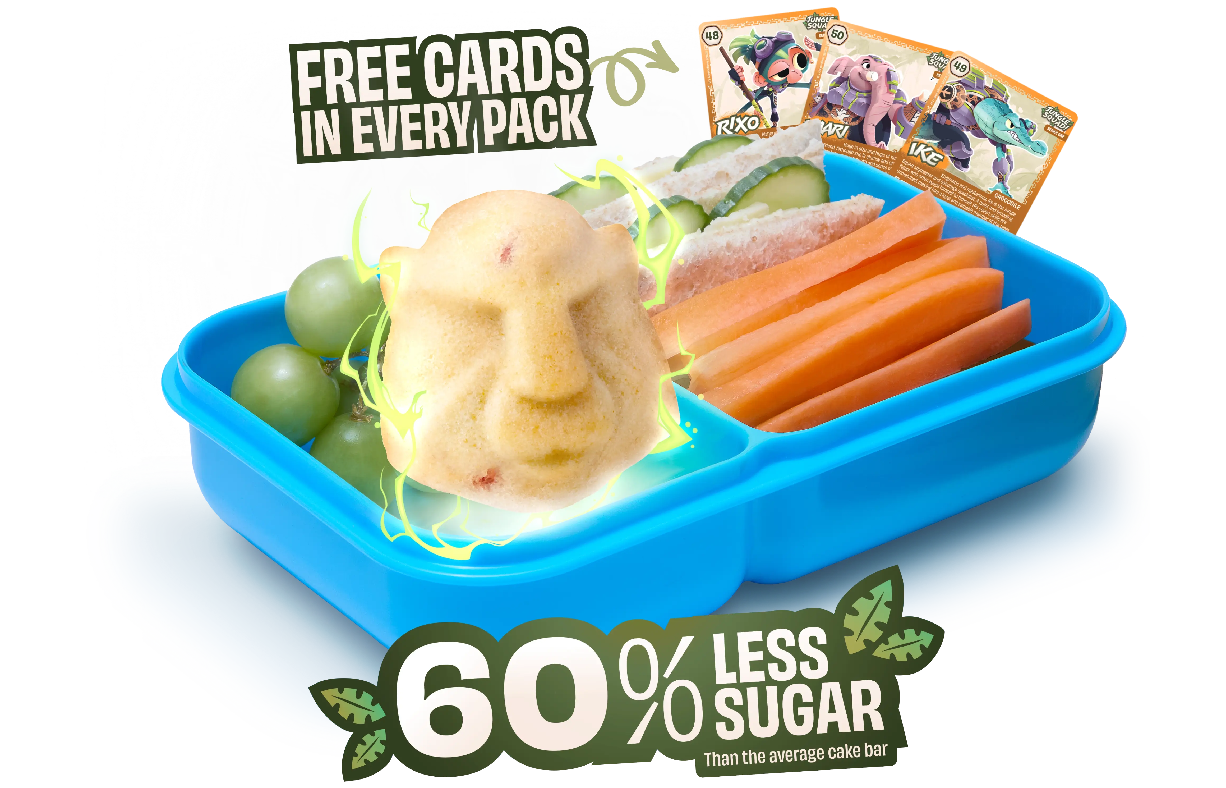 For parents who want better options without the battles. With 60% less sugar than the average cake bar, these character-shaped cakes deliver what kids love and what you can feel good about. Includes 18 collectible paying cards inside.